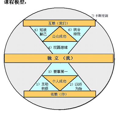 高效能人士中的七个习惯是一个整体,它们相辅相成,既讲到了个人要全力以赴确立目标,进行个人修炼,并由依赖转向独立,从而实现"个人成功"。也讲到了要通过建立共赢,换位沟通,集思广益等,促进团队沟通与合作,实现人际成功。而不断更新更是涵盖了前六个习惯,督促我们从身心开始完善,"不断更新"的创造,会使每一个人走向成功的彼岸。