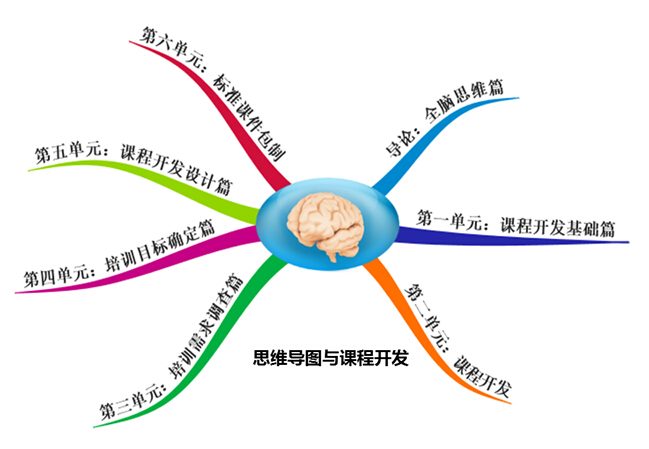 课程大纲:导论:全脑思维篇1、认识大脑:拆掉思维墙、活出真自己2、开发大脑智能:打开智慧的魔盒A.左右智能开发:逻辑思维—意识脑、语言脑、学术脑B.右脑智能开发:形象思维—创造脑、音乐脑、艺术脑3、思维导图的魔力:思维无边、自由无限A.什么是思维导图B.为什么要用思维导图:纵览全局与明察秋毫C.如何使用思维导图:手绘图、imindmap、mindmanager软件使用